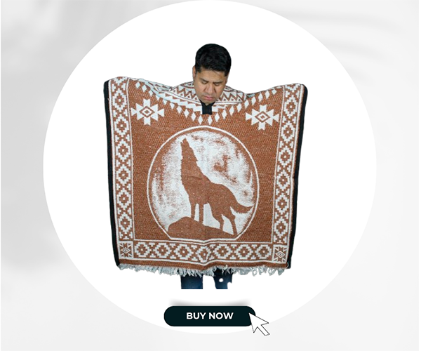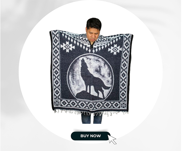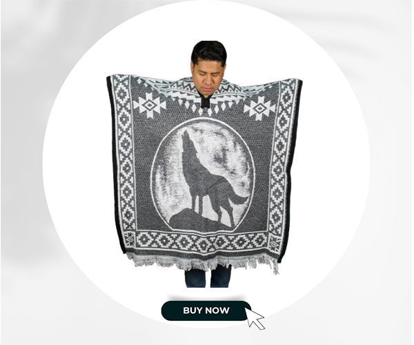 Dare to stand out with the Wolf Poncho without a hoodie, a garment that blends the best of Mexican textile tradition with the strength and freedom of the wolf’s spirit. Its striking and characterful design is perfect for those who enjoy expressing their essence through what they wear.